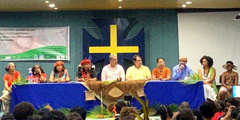 O diretor geral da APPI/APLB e presidente do Conselho Municipal de Educação, Osman Nogueira, esteve presente esta manhã (28) à mesa do Seminário Infâncias em Contexto Indígena: A Educação dos Kurumi Tupinambá. O evento, realizado no auditório Jorge Amado, na Universidade Estadual de Santa Cruz (UESC), tratou das concepções e práticas da Educação Infantil Tupinambá. Além dos diálogos, entre educadores indígenas e entidades parceiras, também houve uma mostra externa, em stands de vivências pedagógicas e culturais Tupinambá, no Bosque da UESC.