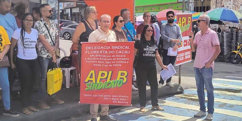 A diretoria da APPI/APLB participou de uma manifestação, hoje (29), em frente ao Núcleo Territorial de Educação Litoral Sul (NTE 05), em Itabuna. O ato faz parte do planejamento para as 48h de paralisação em resposta à negativa da categoria à proposta do governo estadual de 5,69% de reajuste fracionado em 3 parcelas. Além disso, os professores e professoras querem a reestruturação do plano de carreira, o pagamento da 3ª parcela do precatório do FUNDEF e a equiparação do piso para os inativos. Em breve, a APLB fará uma nova rodada de negociação com o governo.