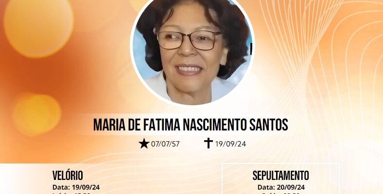 A APPI/APLB lamenta, com pesar, o falecimento da professora aposentada do CAIC Darcy Ribeiro, Maria de Fátima Nascimento Santos. O corpo está sendo velado na sala 03 do SAF Conquista. O sepultamento será amanhã, às 10h, no Cemitério do Pontal. Nossos sentimentos aos familiares e amigos.