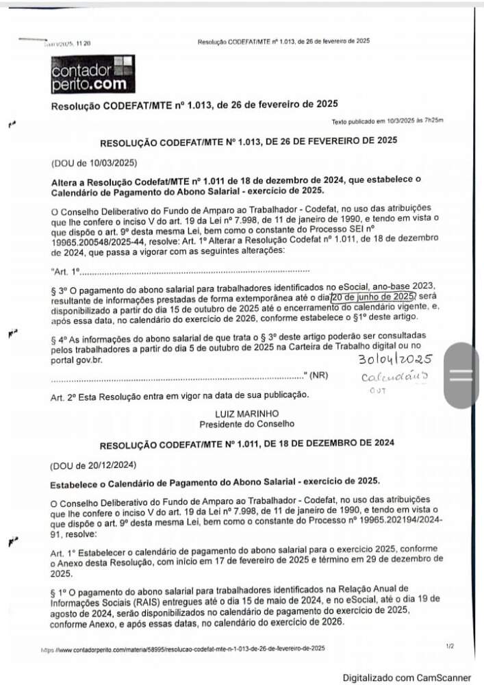 Além disso, foi entregue ao RH, pelo MTE uma resolução atual que estabelece um prazo para a regularização e o pagamento. Em anexo, seguem o ofício e uma cópia da resolução conforme mencionado.