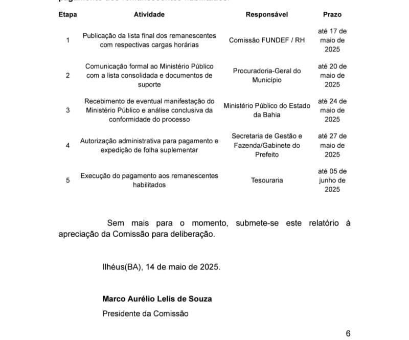Participaram os membros Osman Nogueira, Jailson Teles, José Orlan, Elisângela Moura e Marco Aurélio Leles. Ficou definido o compromisso da comissão em manter o acompanhamento para que os prazos sejam cumpridos e o cronograma preliminar para os pagamentos pendentes (segue abaixo).