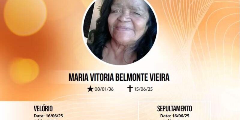 A APPI/APLB manifesta profundo pesar pelo falecimento da senhora Maria Vitória Belmonte Vieira, ocorrido nesse domingo (15), aos 89 anos. O velório acontece na Funerária SAF e o sepultamento será às 15h30 no cemitério local.
