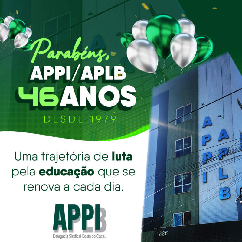 A APPI/APLB Sindicato comemora hoje, 25 de agosto, 46 anos de fundação, resistência e grandes serviços prestados em defesa da educação e dos direitos dos trabalhadores e trabalhadoras. Essa história real de luta começou em 25 de agosto de 1979, amparada no ideal e empenho de professores e professoras que buscavam uma justa valorização.