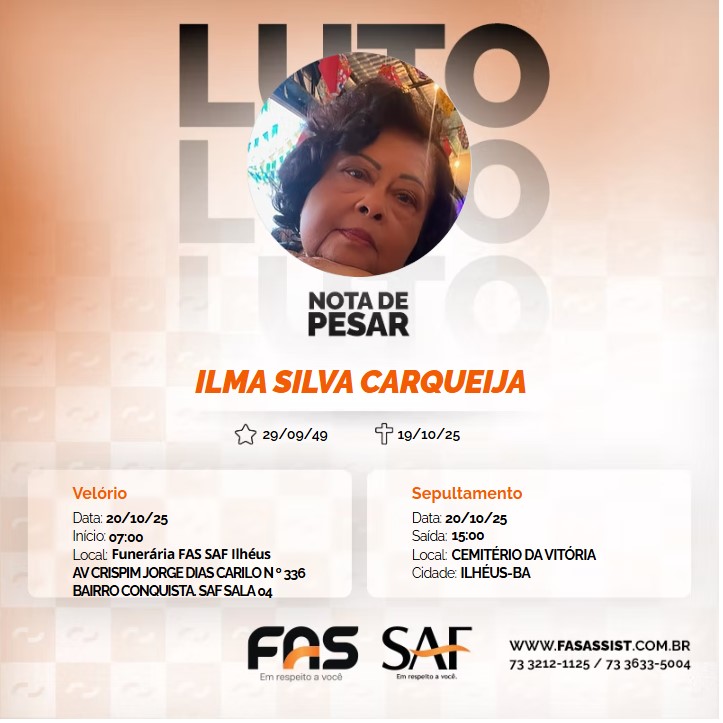 A APPI/APLB lamenta, com profundo pesar, o falecimento da professora aposentada Ilma Silva Carqueija, que trabalhou na Escola Municipal Heitor Dias. O velório está acontecendo hoje (20), no SAF do bairro Conquista. O sepultamento está previsto para as 15h, no Cemitério da Vitória.